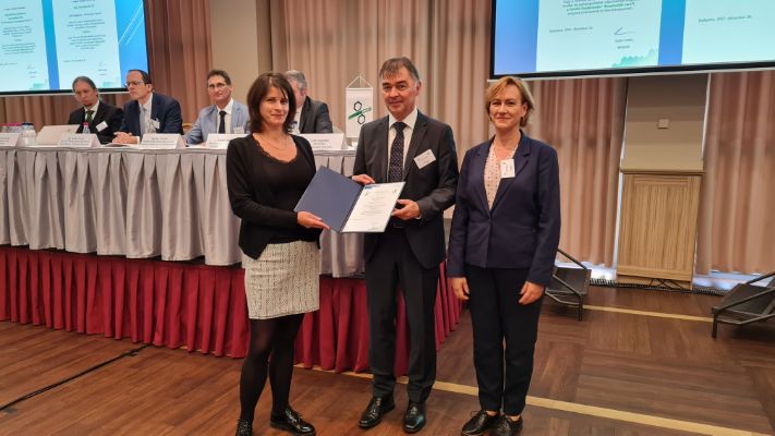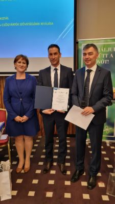 Lakatos József EHS vezető átveszi az FG tanúsítványt Tóth Angelika MAVESZ igazgató-helyettestől