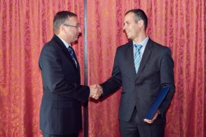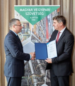 Szakolczai András ügyvezető igazgató, BRENNTAG Hungária Kft. átveszi az FG tanúsítványt Budai Iván MAVESZ igazgatótól