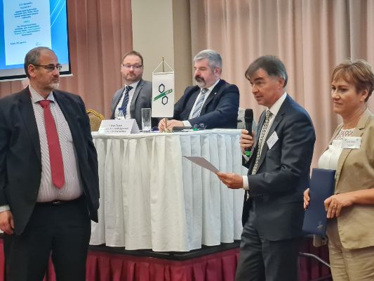 Király Lajos EBK vezető átveszi az FG tanúsítványt Klement Tibor MAVESZ elnöktől