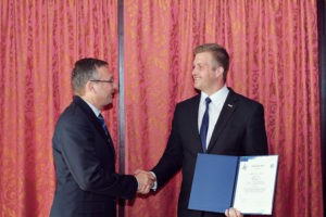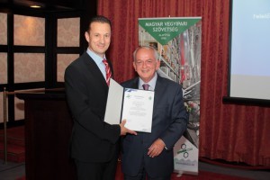 Emri György ügyvezető igazgató átveszi az FG tanúsítványt Klement Tibor MAVESZ elnöktől